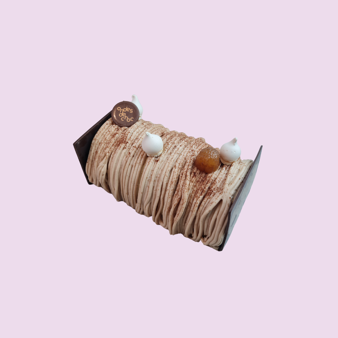 Une bûche élégante et pleine de douceur, où le marron s’invite en majesté.